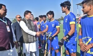 मुख्यमंत्री श्री पुष्कर सिंह धामी ने बुधवार को वन्दना कटारिया स्पोर्ट्स स्टेडियम पहुॅचकर 38वें राष्ट्रीय खेलों के अन्तर्गत आयोजित कुश्ती तथा हॉकी प्रतियोगिता का शुभारंभ किया। इस अवसर पर मुख्यमंत्री ने सभी खिलाड़ियों से मुलाकात कर उनका उत्साह वर्धन किया।