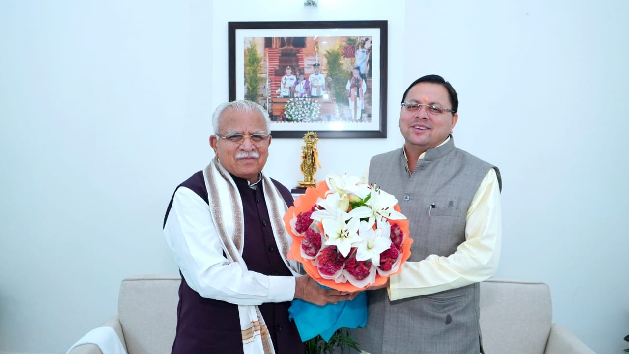 सीएम पुष्कर सिंह धामी ने केंद्रीय विद्युत मंत्री मनोहर लाल खट्टर से भेंट की