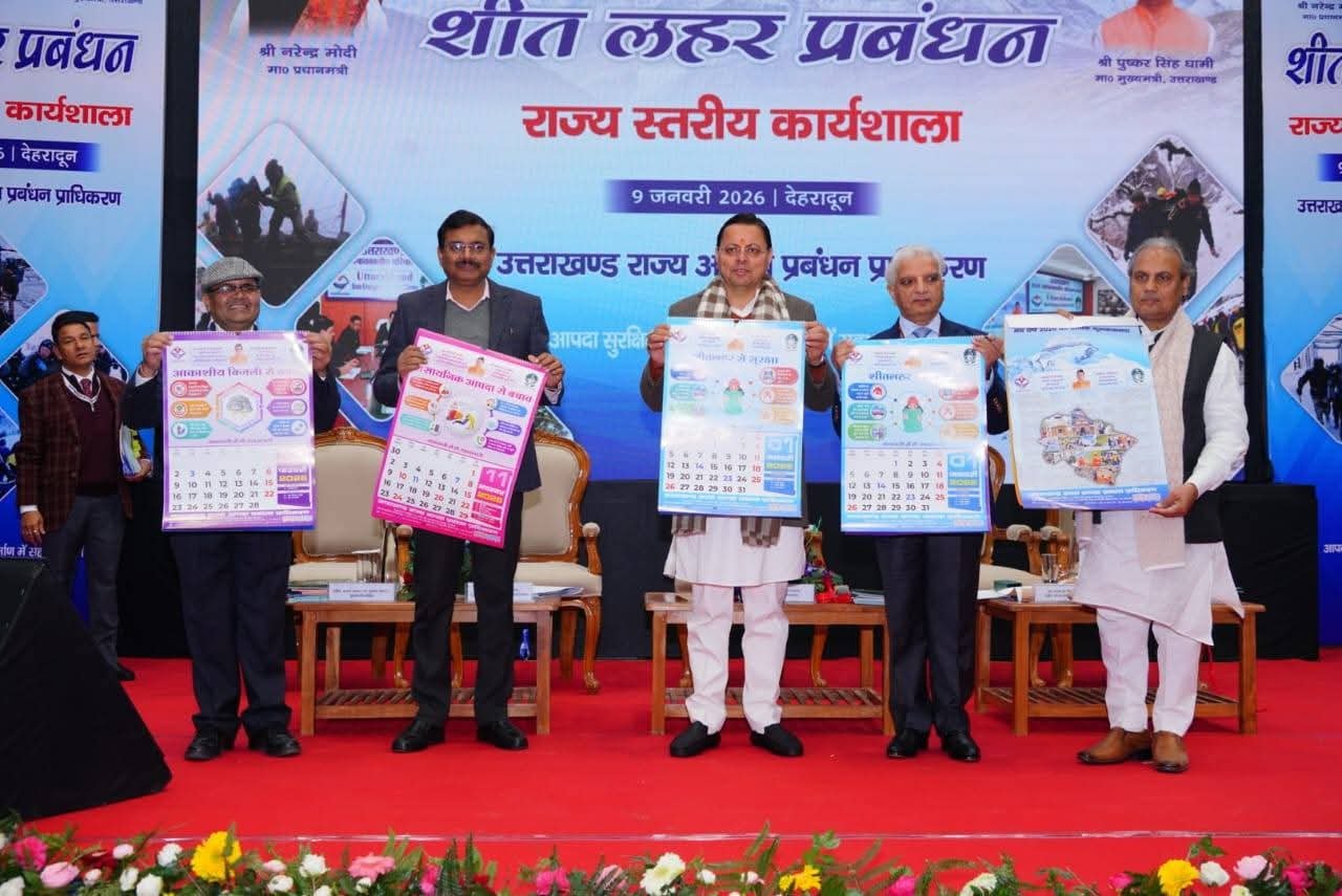 मुख्यमंत्री श्री पुष्कर सिंह धामी ने शुक्रवार को सर्वे ऑफ इंडिया ऑडिटोरियम, हाथीबड़कला में ‘शीतलहर पूर्व तैयारी’ विषय पर आयोजित एक दिवसीय कार्यशाला का शुभारंभ किया। इस अवसर पर उन्होंने शीतलहर, बाढ़, मॉक अभ्यास, हवाई यातायात सहायता की एस.ओ.पी., आपदा प्रबंधन विभाग के नववर्ष कैलेंडर 2026 एवं आपदा प्रबंधन हस्तपुस्तिका का विमोचन किया। कार्यक्रम के दौरान मुख्यमंत्री ने युवा आपदा मित्रों एवं वर्ष 2025 में आपदा के दौरान राहत एवं बचाव में सराहनीय कार्य करने वाले लोगों को सम्मानित भी किया। आपदा प्रबंधन के लिए स्टेट बैंक ऑफ इंडिया द्वारा उपलब्ध कराए गए चार वाहनों का भी मुख्यमंत्री ने फ्लैग ऑफ किया।
