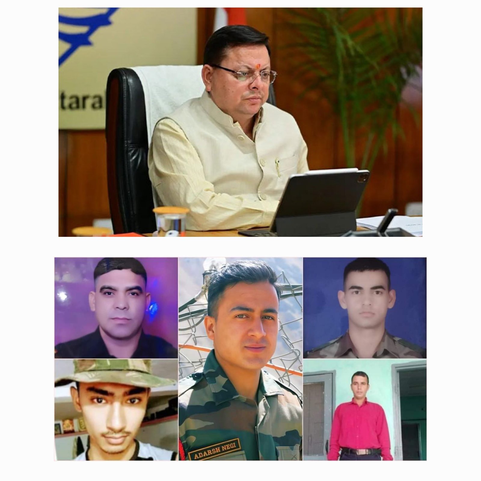 नायब सूबेदार आनंद सिंह रावत, हवलदार कमल सिंह, नायक विनोद सिंह, राइफलमैन अनुज नेगी, आदर्श नेगी, का सर्वोच्च बलिदान व्यर्थ नहीं जाएगा: धामी