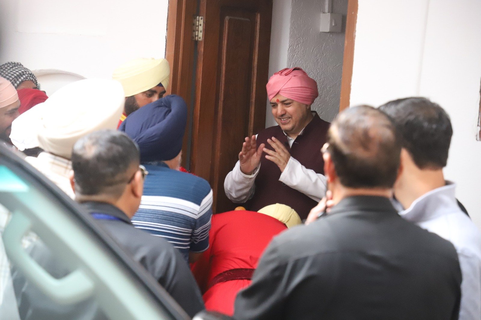 शुक्रवार प्रातः ब्रह्ममुहूर्त से ही संगतों के श्री गुरु राम राय पब्लिक स्कूल, बॉम्बे बाग पहुँचने का क्रम प्रारम्भ हो गया था। श्रद्धालु अपने हृदय में अपार आस्था और गुरु भक्ति का भाव लिए इस पावन क्षण की प्रतीक्षा कर रहे थे। यहाँ पर दरबार श्री गुरु राम राय जी महाराज के सज्जादे गद्दी नशीन श्रीमहंत देवेन्द्र दास जी महाराज ने संगतों को पावन दर्शन देकर उन्हें आशीर्वाद प्रदान किया। उनके सान्निध्य में वातावरण पूर्णतः आध्यात्मिक ऊर्जा और दिव्य भावनाओं से भर उठा।