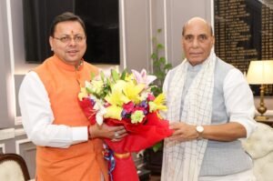 मुख्यमंत्री श्री पुष्कर सिंह धामी ने मंगलवार को नई दिल्ली में केंद्रीय रक्षा मंत्री श्री राजनाथ सिंह से भेंट कर राज्य से जुड़े महत्वपूर्ण विषयों पर चर्चा की। मुख्यमंत्री ने केन्द्रीय रक्षा मंत्री से रानीखेत और लैंसडाउन छावनी क्षेत्र को नगर पालिकाओं के साथ विलय करने का अनुरोध किया। जिससे इन क्षेत्रों में पर्यटन एवं जनसुविधाओं के समग्र विकास में सहयोग मिलेगा। धारचूला और जोशीमठ के सैन्य हेलीपैड को आरसीएस हवाई सेवा के अंतर्गत उपयोग करने के लिए अनुमति प्रदान करने का आग्रह किया। राज्य के आपदा एवं राहत कार्यों के लिए भारतीय वायुसेना की सेवाओं के लिए देय शुल्क को माफ किये जाने का भी मुख्यमंत्री ने अनुरोध किया।